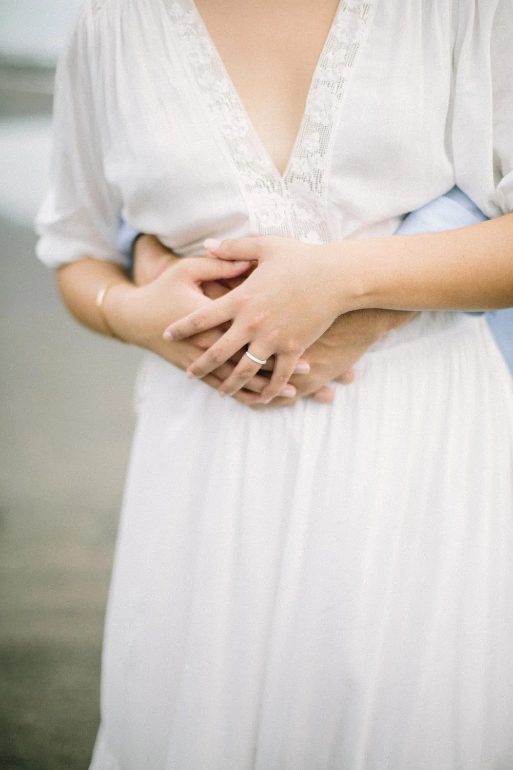 We met on a deserted beach in Bali, where endless stretches of black sand kissed the horizon. It was the perfect setting for a couple's session. They embraced, their feet sinking into the damp sand, surrounded by the timeless beauty of the ocean.